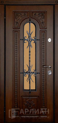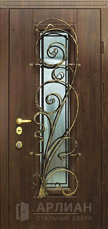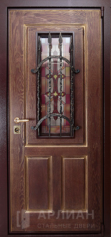 Входная кованная дверь с витражом и ковкой №20