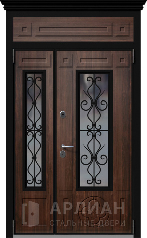 Двустворчатая входная дверь металлическая со стеклом №17