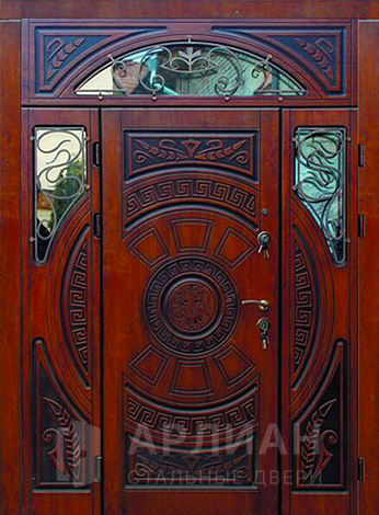 С ковкой стальная арочная дверь в частный дом №91